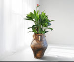 The Tulip Planter is a beautifully crafted piece that brings a Mediterranean flair and timeless elegance to any space. With its warm, earthy tones and traditional urn shape, this planter evokes the rustic charm of sun-soaked Tuscan landscapes. The curved body and wide mouth provide ample space for plants, while the sturdy, rope-wrapped handles on either side add a touch of artisanal craftsmanship. Note: Faux Botanic are not included.